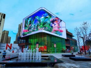 In addition, the display is designed to seamlessly integrate with the building façade, enhancing the mall’s visual impact and attracting foot traffic. Whether for festive displays, advertising campaigns, or nighttime lighting effects, the large-scale LED display provides an immersive visual experience, adding a modern technological and artistic touch to the commercial space.